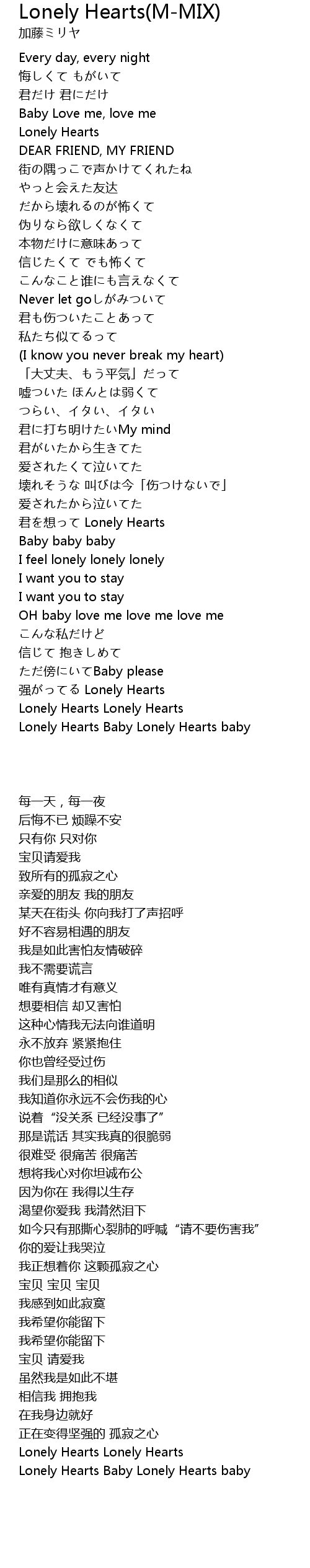 加藤ミリヤ Miliyah Lonely Hearts Lyrics Genius Lyrics